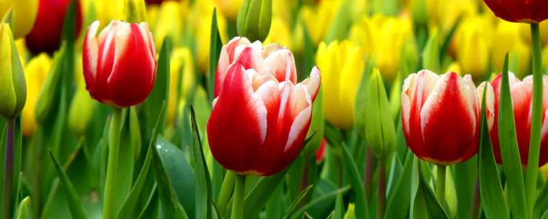 郁金香的花期通常是在三月份到五月份左右,开花前要经过冬季的低温处理才能开花,每年通常开花一次,在自然的条件下秋季不会开花。控制温度可以调控花期,温度适宜的情况下可以提前到十二月份左右开花。